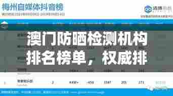 随着夏季的到来,防晒成为了人们日常生活中的重要话题,澳门作为一个旅游胜地,其防晒产品的需求也日益增长,本文将为您介绍澳门最新的防晒检测机构排名,以帮助您选择到更为可靠的产品和服务。