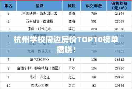 杭州,这座被誉为“人间天堂”的城市,不仅以其优美的自然风光和繁荣的经济吸引了无数人的目光,更以其教育资源丰富、学校房价高涨成为家长和学子们关注的焦点,本文将为您揭晓杭州学校房价排名前十名,带您一探杭州教育地产的热门榜单。