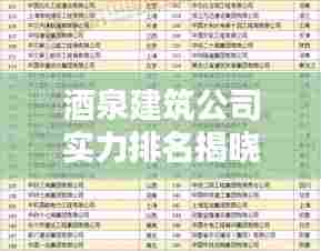 随着酒泉市经济的持续繁荣和城市化进程的加快,建筑业在酒泉市的发展势头迅猛,众多建筑公司在这一背景下崭露头角,为酒泉市的建筑行业发展注入了新的活力,本文将为您详细介绍酒泉建筑公司的排名及相关情况。