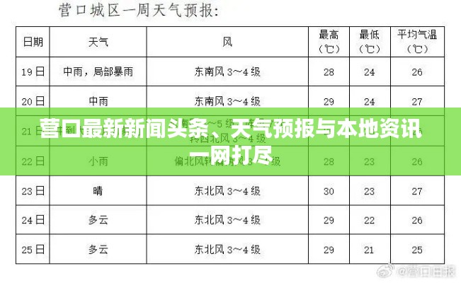 本文为您提供了最新的营口新闻头条,包括天气预报、交通状况、社会热点等方面的信息,希望您能从中获取所需资讯,更好地了解营口市的最新动态,请继续关注我们的后续报道,为您带来更多精彩内容。
