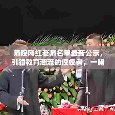 随着互联网的普及,社交媒体的影响力日益增强,各行各业涌现出一批批网红新星,在教育领域,师院网红老师逐渐成为公众关注的焦点,他们凭借独特的教学方式、亲和的人格魅力以及与时俱进的教育理念,赢得了广大师生的喜爱和追捧,本文将对最新公示的师院网红老师名单进行介绍,展示他们在教育领域的风采。