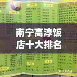 南宁,作为广西壮族自治区的首府,以其丰富的自然资源和繁荣的经济而闻名,在这座充满活力的城市中,美食文化同样丰富多彩,今天我们将聚焦于南宁高淳地区的饭店,为您介绍排名前十名的高品质餐厅,让您在品尝美食的同时,感受这座城市的魅力。