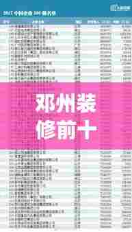 邓州市是河南省一个充满活力和发展潜力的城市,随着城市的快速发展,装修行业也在蓬勃兴起,本文将为您介绍邓州装修排名前十名的公司及其电话,帮助您更好地了解并选择适合自己的装修服务商。