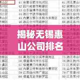 随着江苏无锡地区经济的蓬勃发展,众多优秀企业在这一繁荣的土壤中崭露头角,无锡惠山公司以其卓越的表现和实力,在地区内乃至全国范围内均享有盛名,本文将探讨无锡惠山公司的排名及其影响力。