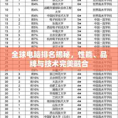 随着科技的飞速发展,电脑已成为我们日常生活和工作中不可或缺的重要工具,全球各地的消费者对于电脑的需求日益旺盛,从而催生了众多电脑品牌和型号的出现,本文将探讨世界排名电脑的相关内容,从性能、品牌及技术等方面带您了解这一领域的最新动态。
