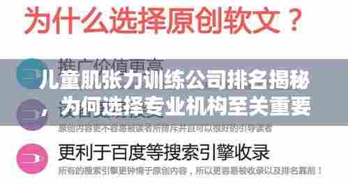 儿童肌张力训练对于儿童的健康成长具有重要意义,选择一家专业的儿童肌张力训练公司至关重要,家长在选择公司时,应了解公司的背景、团队实力、设施等方面,以确保孩子得到最好的训练服务,家长还应关注儿童肌张力训练公司的排名,选择排名靠前的公司,为孩子提供更优质的服务,希望通过本文的介绍,家长能更好地了解儿童肌张力训练公司,为孩子的健康成长做出明智的选择。