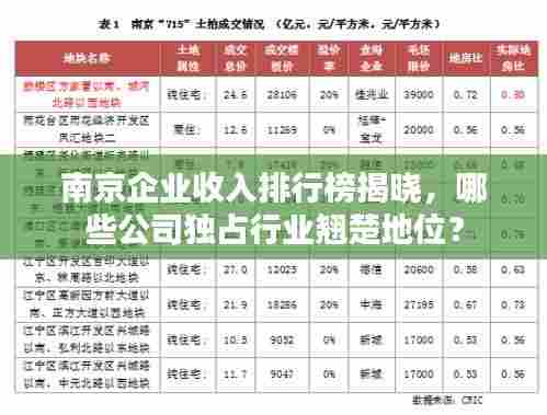 南京,作为江苏省的省会城市,一直是经济发展的重镇,随着时代的变迁,南京的公司和企业如雨后春笋般涌现,各具特色,蓬勃发展,在这些企业中,哪些公司的收入在南京独占鳌头呢?本文将为您揭示南京公司收入排名,带您一探究竟。