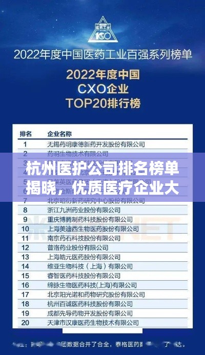 杭州,这座美丽的城市不仅是旅游胜地,也是医疗科技和服务业蓬勃发展的地方,众多医护公司在杭州崭露头角,为市民提供专业、高效的医疗服务,本文将为您揭晓杭州医护公司的排名榜,带您了解这些公司的优势和特色。