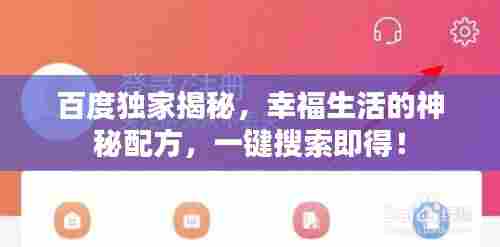 在百度的广阔海洋中,隐藏着许多关于幸福的配方,这些配方并非简单的教条,而是融合了心理学、生活智慧、人生经验等多种元素的心灵指南,通过搜索,你可以找到许多关于如何提升幸福感的方法和建议,如保持良好的人际关系、培养兴趣爱好、保持身体健康等。