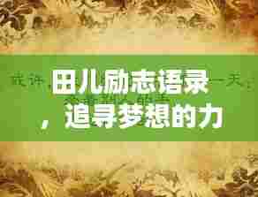 田儿励志语录是一种精神力量,它激励我们勇敢面对困难,坚定信念,追求梦想,在这漫长的人生旅程中,我们要时刻铭记这些励志语录,让它们成为我们前进的动力和勇气,让我们一起携手前行,用勇气和毅力创造美好的未来!