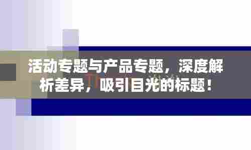 在当今社会,无论是商业领域还是文化活动,专题的策划和执行都扮演着至关重要的角色。“活动专题”与“产品专题”是常见的两种专题类型,虽然它们在某些方面可能存在相似之处,但它们在策划、实施以及目的等方面有着显著的区别,以下是对两者的详细解析。